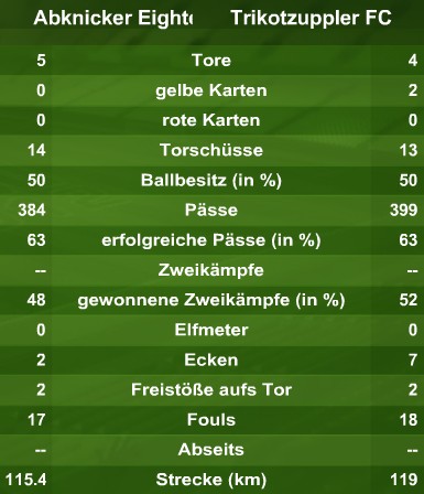Durch den knappen 5:4 Erfolg über die Trikotzuppler haben die Abknicker Eightees ihren Platz an der Sonne in 1.1 verteidigt.