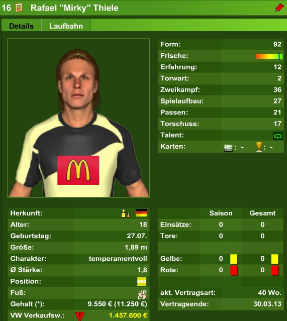 Soeben wurde Ulrich Griese verabschiedet. Griese wurde in einer Nacht- und Nebelaktion für die Rekordablöse von 20Mio am 01.06. verpflichtet um kurfristig auf den Flügeln eingesetzt zu werden. Die Meisterschaft konnte gesichert werden, für seinen einen Einsatz danken wir ihm. Für die Zukunft wünscht ihm das Management alles Gute.