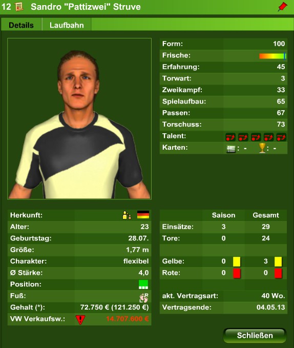 Nun beginnt also die 9. Saison für die Abknicker in GU2012. Man startet diese mit einer 77er Stärke bei 540 Mio Marktwert. Die Stammaufstellung sieht folgendermaßen aus:
