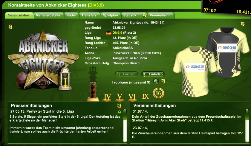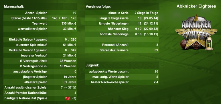 Start der 18. Saison Veröffentlicht am 1. August 2014 von stanky Antworten Hier die aktuellen Teamstats: