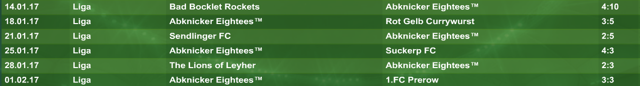 Kader der 28. Saison Veröffentlicht am 8. Februar 2017 von admin Antworten zu Beginn zum Ende… Stache, Bretsmann und Garnaud haben die Abknicker verlassen. Leihspieler Ward, Sprick, Serafim und Kara haben das Team verstärkt bzw ergänzt!