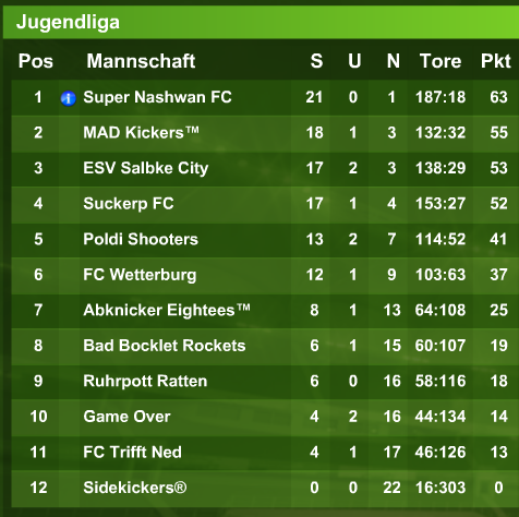 Die Abknicker Eightees haben sich zum 10. Mal die dt. Meisterschaft in der 1.1 geholt. Damit haben sie die Saisonziele erreicht. Einzig ein IM Titel blieb den Abknickern bisher verwehrt.