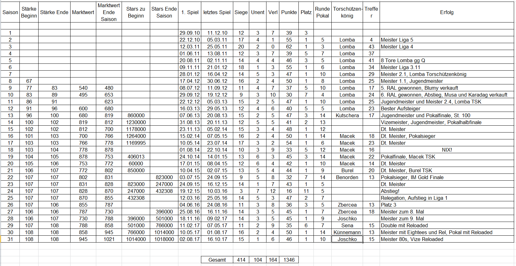 Start der 32. Saison Veröffentlicht am 24. Oktober 2017 von admin Antworten Hier die Teamstärken zu Beginn der 32. Saison: