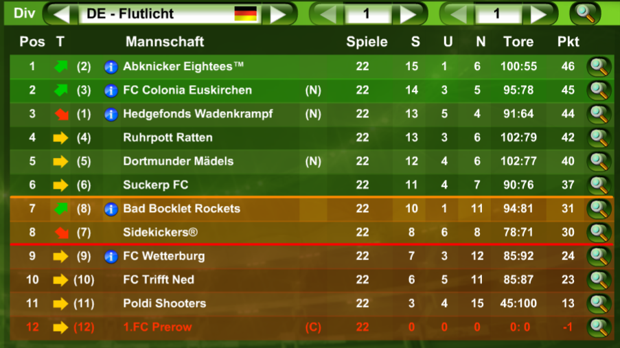 Abschlusstabellen der 31. Saison
