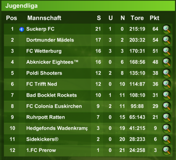 Die Saison Nr. 31 neigt sich dem Ende entgegen und verlief für die Abknicker recht erfolgreich! Eightees sicherten sich die 11. Dt. Meisterschaft, Reloaded wurde Vizemeister. Im Pokal lief es eher suboptimal, da wollen wir in der 32. Saison wieder angreifen.