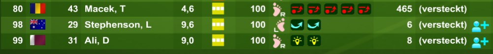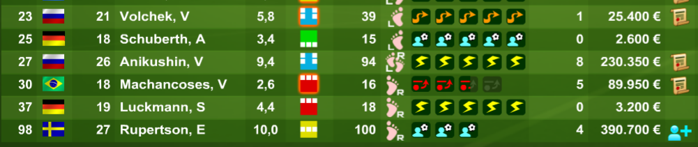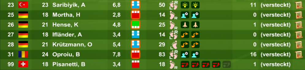 2 Jugis sollen in den Profikader integriert werden. Sollte der Charakter gewechselt werden, dann werden wohl Mihov und Lavazza das Team verlassen, Groth, Zeyyat und Theetz werden aggressiv.